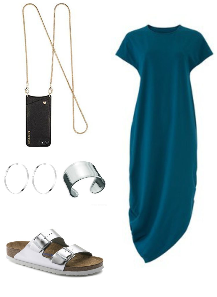 - Use Accessories to Set the Tone. My Universal Standard dresses can go from being a beach coverup to a cocktail dress with a change of shoes and jewelry. Accessories don’t take a lot of space. I recommend bringing one dressier bag (I used the Bandolier since I wanted my hands free and knew I wouldn’t go anywhere super dressy), one pair of shoes that can blend in at a dressy occasion (black flats, a nude-to-you flat or sandal in good condition, or a metallic sandal), and a few accessories to change up looks (a statement earrings, a long pendant necklace, a neck scarf are good choices).