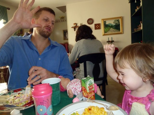 Each year we do this – she makes an amazing lunch, the kids get their gifts from the great-grandparents, we even bring my sister and mom!
