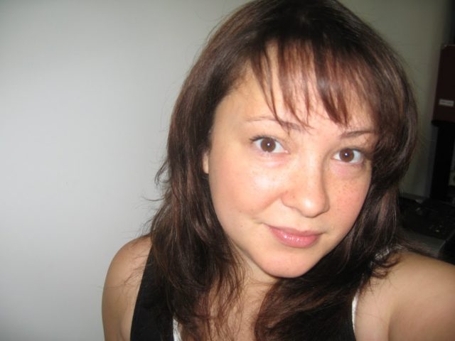 Makeup is Smashbox Photo Finish foundation primer, L'Oreal True Match foundation in C3, concealer in W4-5, Cago Matte BeachBlush in Tenerife, Pop Beauty shadow set for brown eyes – the sparkly light khaki color on the lids, a darker khaki in the crease and along the lash lines. Maybelline UltraLiner in black on top lash line, matted by Soft Black eye color by The Body Shop. lashes curled, two coats of Max Factor Lash Perfection in black. On lips is Neutrogena Moistureshine Soothing Lipsheer in Plum Kiss (which is more of a rusty berry shade on my lips and not at all sheer).