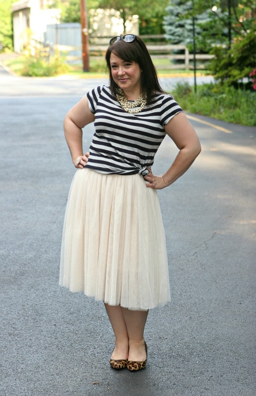 The top is from Talbots; I've mentioned before how I like Talbots Breton tops (and have worn them before too) and this is one of their latest offerings. It's a great length to wear tucked in or out. I am wearing XL petite. This top comes in Talbots' complete size range of Misses, Petite, Plus, and Plus Petite up to 3X.