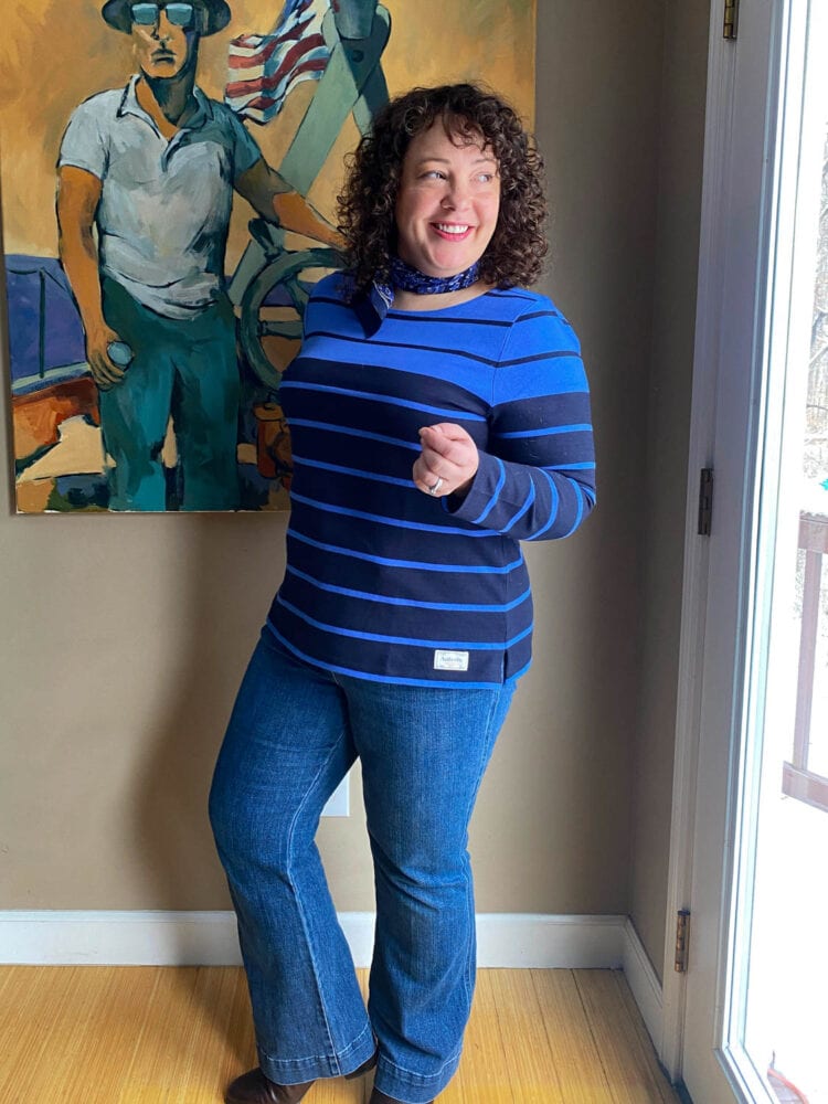 This is a heavier-weight knit, more like a maritime-inspired top, and as this isn't my first Talbots Breton, I know these wear like iron and I think just get better with time. I linked to a bunch of Talbots' Breton tops below; many of them are on sale for around $19.99.