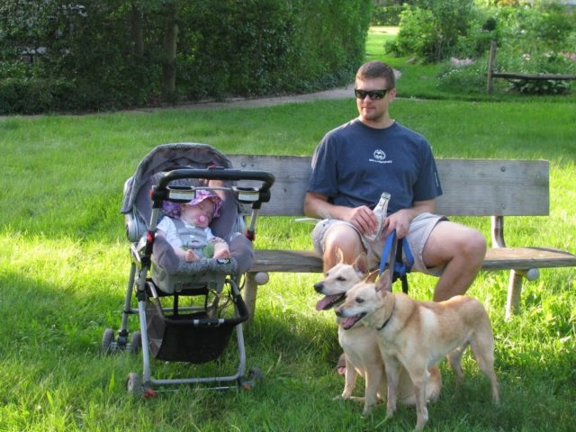 Here's my family (minus poor Ruckie who was home watching the roost – he got his own private short walk later).