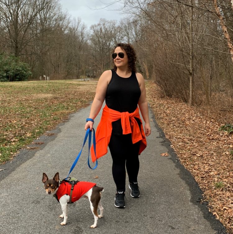 Another activewear post! We've had the weirdest winter. Usually in January we're dealing with ice and snow but we've had several days in the 60's like this one. I am wearing the Soma Split Back Tunic (Large) and the Soma Moves Nonstop Leggings (Large), both which I featured in this post. I love both these pieces and wear them quite often. The description of “split back” doesn't sound appealing to me; I have one of those tops from Old Navy and I hate it because my back is on display as soon as I bend over in the slightest. But this one, the split is right at the waistband so it just gives freedom of movement without exposing skin. The leggings are so good. They're not heavy but they stay opaque. They have a nice high waistband that stays in place and deep side pockets that can hold things like your phone, sunglasses, and a wallet. I've even slipped my water bottle into them! The shoes are Asics, I bought them a year or so ago from Nordstrom and I think this is the current version of them. The orange jacket around my waist is from Talbots and it's old. I did an in-store event with Talbots… gosh I think it was four years ago and received store credit and it's one of the things I bought. It has held up beautifully, and again is my favorite color. I love that it has exterior pockets but the way the pockets are stitched inside it's like two pockets in there too. I regularly use it for the gym because the jacket can carry my wallet, earbuds, lifting gloves, lip balm, and phone and have it all secure and not have me look like a sherpa. I was looking at Talbots' New Arrivals and this looks like a very similar jacket, especially based on the customer reviews. My jacket is an XL and it's a bit big so if I was buying this year's version I'd get a large.