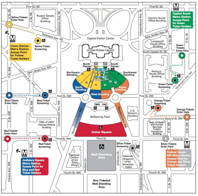 Jumbotrons and speakers are set up all over the National Mall for everyone to see the ceremony, and from past experience, being in the crowd is fun. An area on the Mall west of Fourth Street NW will be open to the public without tickets.