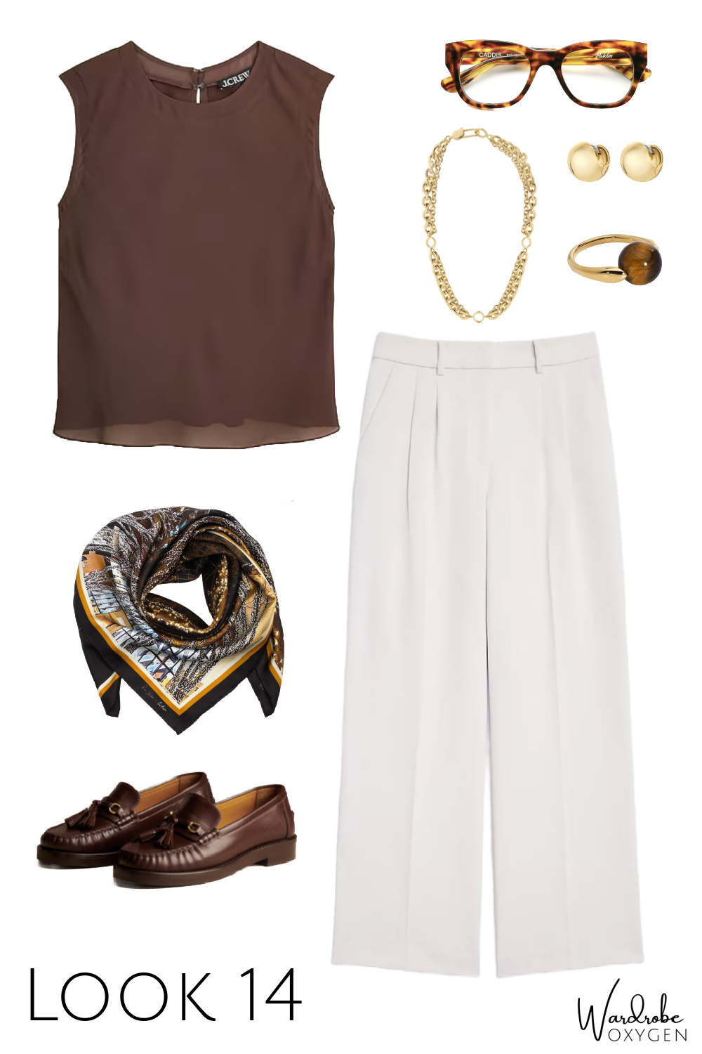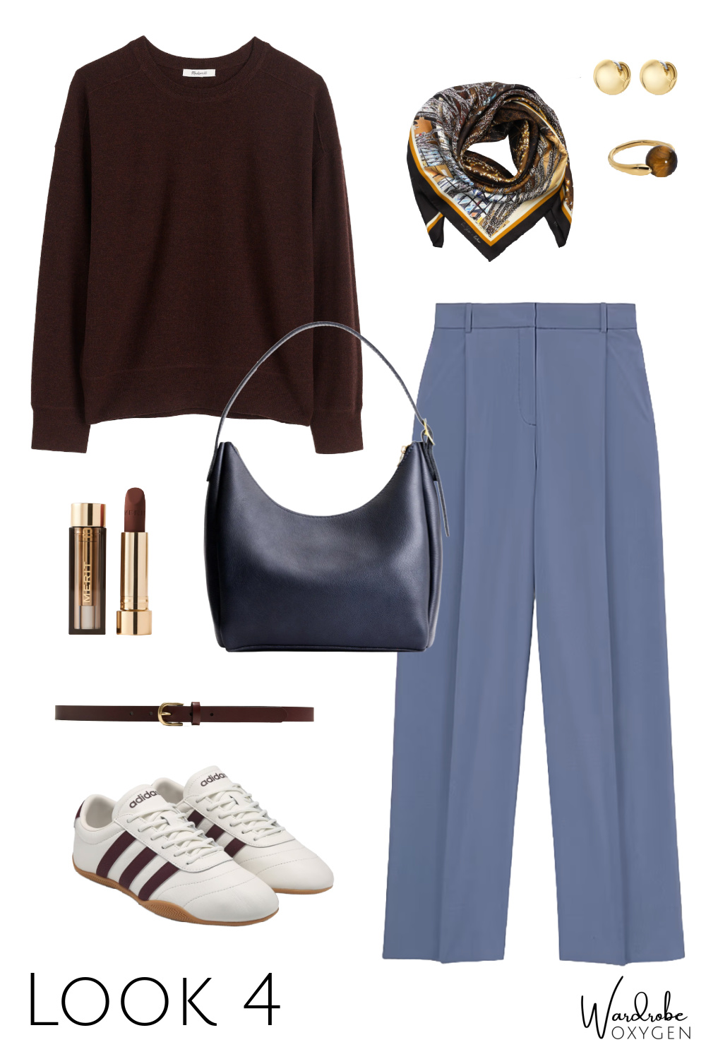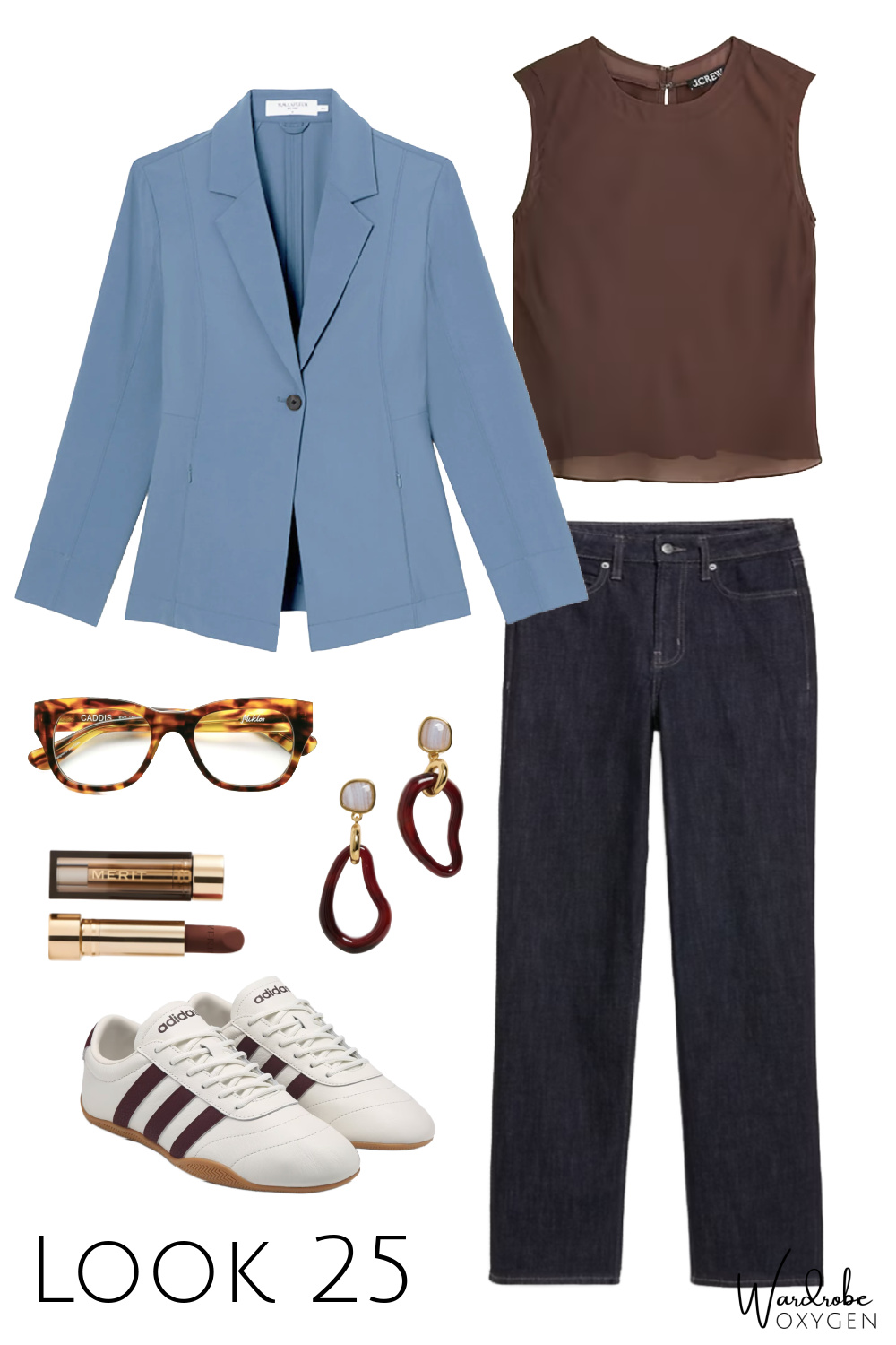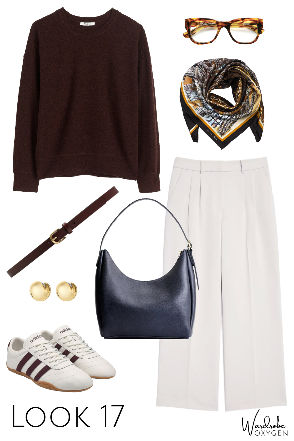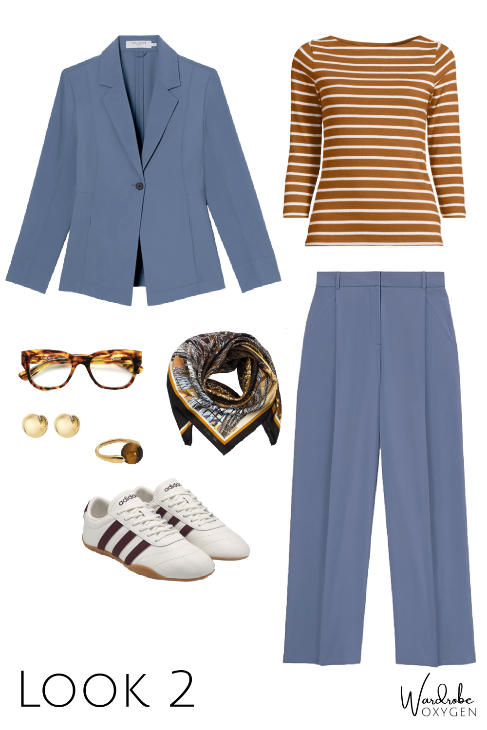 I made this capsule wardrobe with many items I personally own and can vouch for. The LOFT Versa jacket and pants? I own (see them on me here). The M.M.LaFleur blazer? I also own (see them on me here in a different color). I own the glasses in a different color, I own pieces from the scarf, bag, shoe, sneaker, and jewelry brands, own the bone-colored belt, the striped top in a different color, the silk blouse in a different print, the belted cardigan… I like to walk the talk and create truly functional capsule wardrobes you can feel confident in.