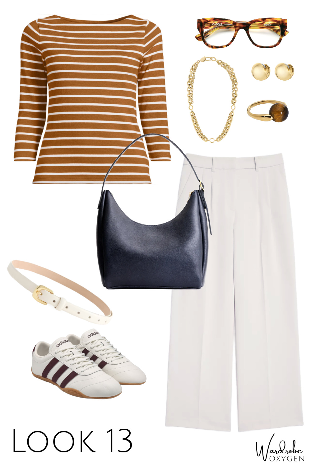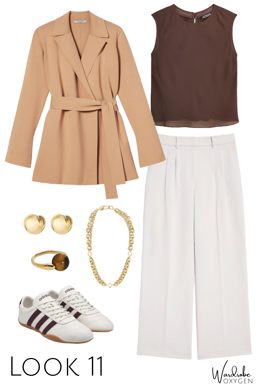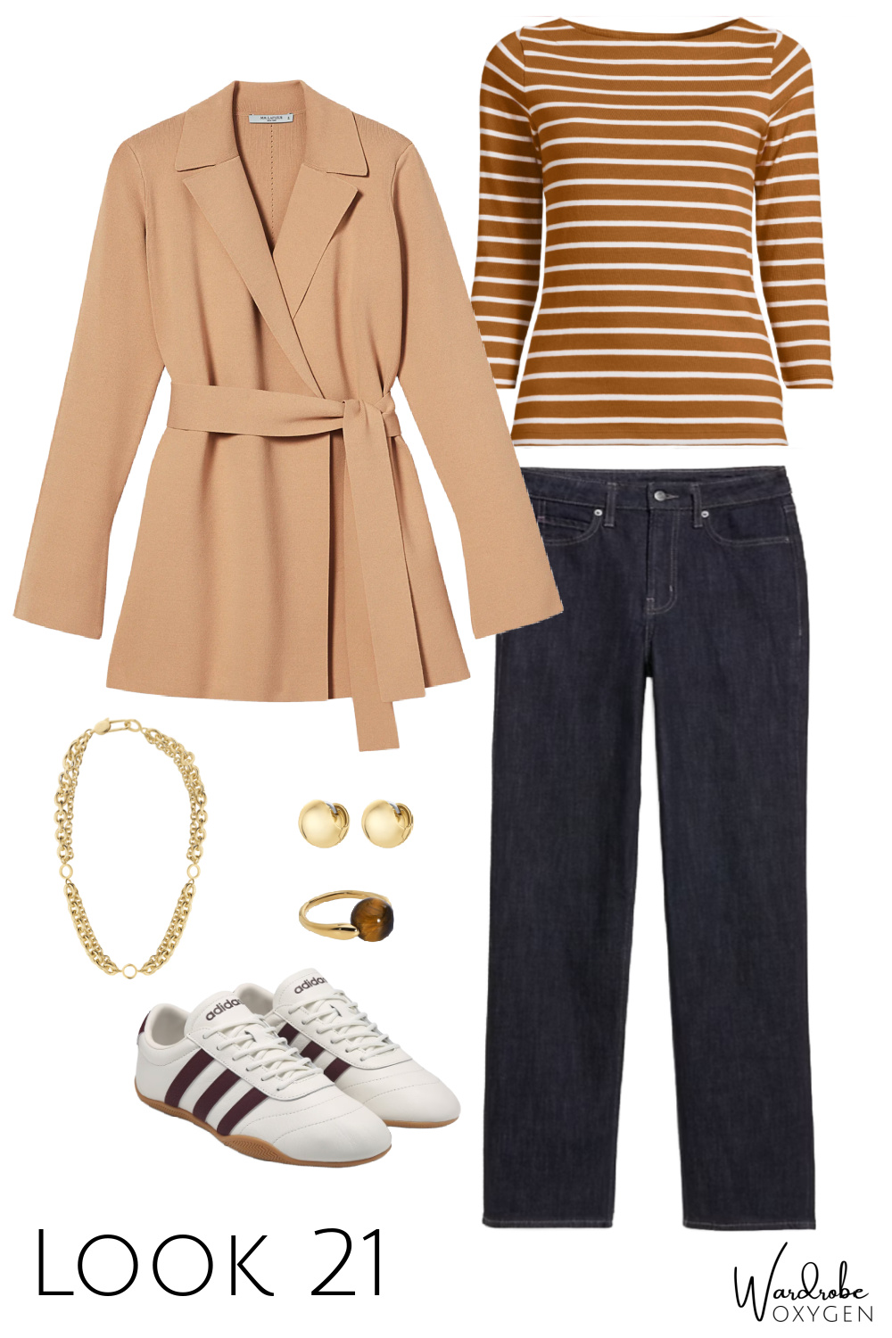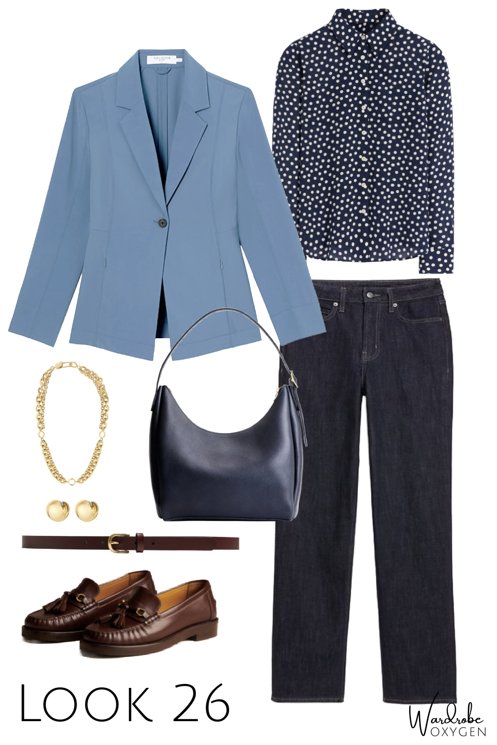 I made this capsule wardrobe with many items I personally own and can vouch for. The LOFT Versa jacket and pants? I own (see them on me here). The M.M.LaFleur blazer? I also own (see them on me here in a different color). I own the glasses in a different color, I own pieces from the scarf, bag, shoe, sneaker, and jewelry brands, own the bone-colored belt, the striped top in a different color, the silk blouse in a different print, the belted cardigan… I like to walk the talk and create truly functional capsule wardrobes you can feel confident in.