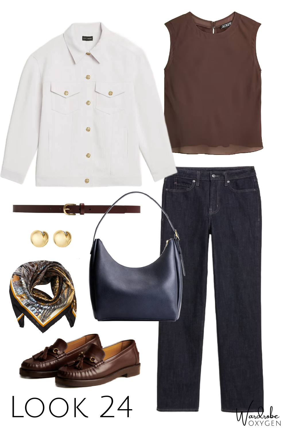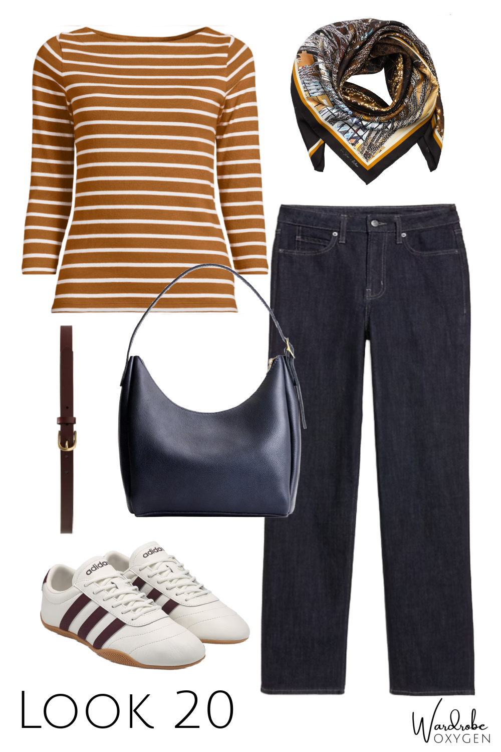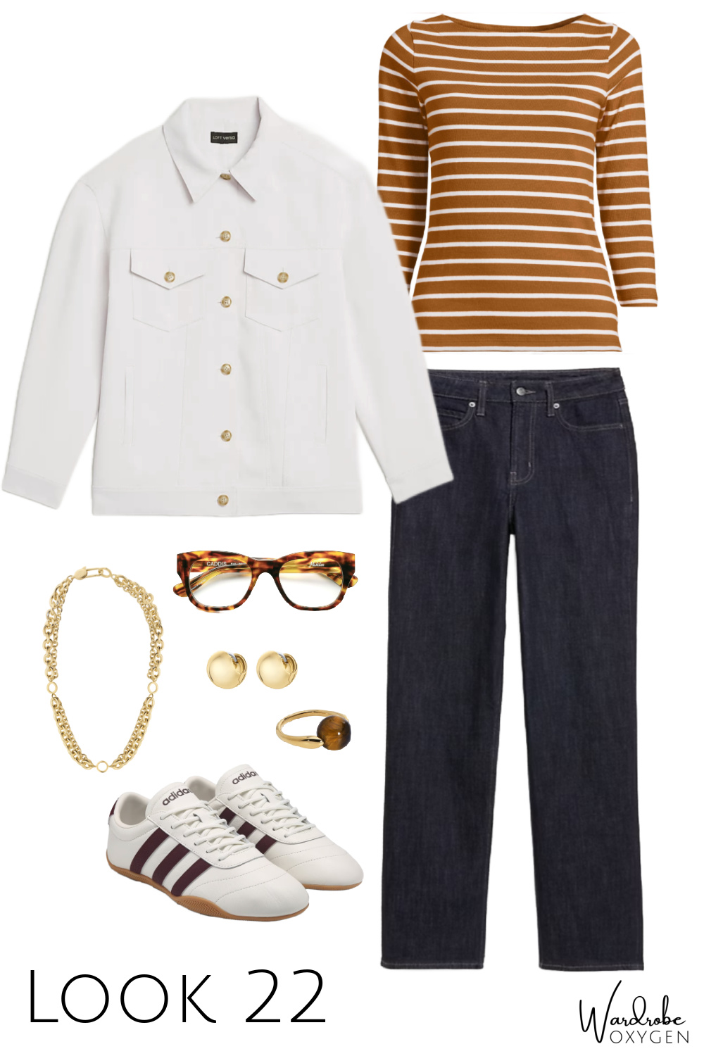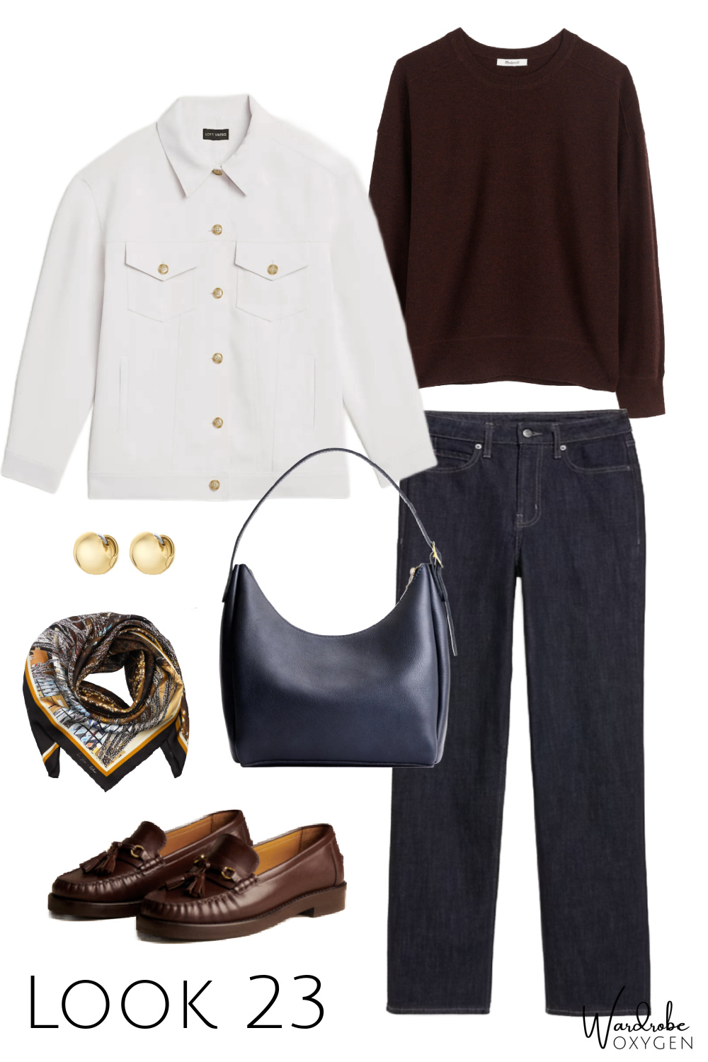 I made this capsule wardrobe with many items I personally own and can vouch for. The LOFT Versa jacket and pants? I own (see them on me here). The M.M.LaFleur blazer? I also own (see them on me here in a different color). I own the glasses in a different color, I own pieces from the scarf, bag, shoe, sneaker, and jewelry brands, own the bone-colored belt, the striped top in a different color, the silk blouse in a different print, the belted cardigan… I like to walk the talk and create truly functional capsule wardrobes you can feel confident in.